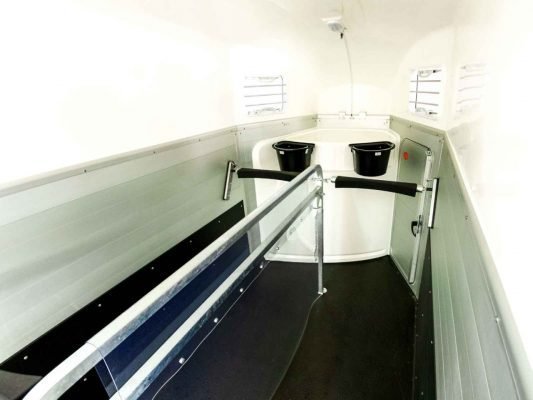 Toujours frais devant : grâce à la fenêtre avant réglable dans cinq directions, il n’y a pas d’air épais dans le XANTHOS AERO . Un déflecteur d’air installé de série et une trappe de toit pouvant être installée ultérieurement sur demande assurent également un apport d’air frais sans courant d’air. Mais le confort n’est pas la seule priorité chez Humbaur : la cloison verrouillable, les parois latérales en aluminium anodisé et le profilé de cadre galvanisé à chaud font du XANTHOS AERO une remorque pour chevaux stable et robuste pour les plus hautes exigences.