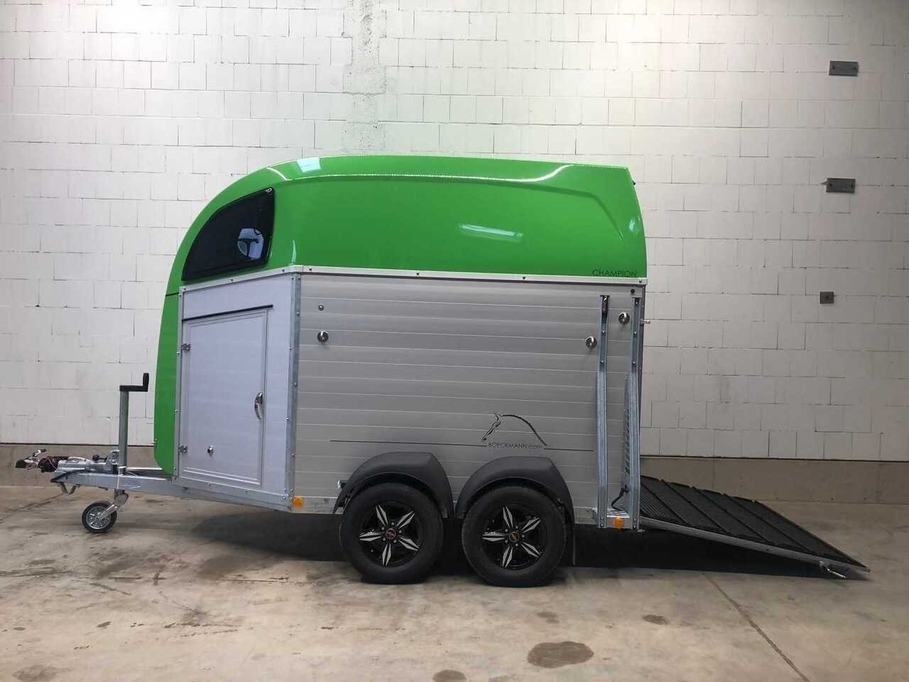 Böckmann Champion R – 2 vans pour chevaux – entièrement en aluminium avec proue en polyester et capot en vert jaune frais